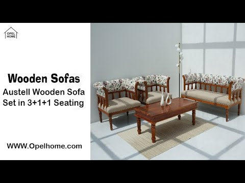 طقم كنب أوستيل ٣+١+١ (بدون طاولة قهوة) - خشب ورد صلب، لون عسلي، قماش برونزي | أوبل هوم الإمارات العربية المتحدة