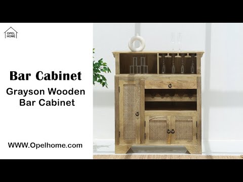 خزانة بار خشبية من غرايسون - خشب مانجو مصمت، لمسة نهائية طبيعية، مساحة تخزين واسعة | أوبل هوم الإمارات العربية المتحدة