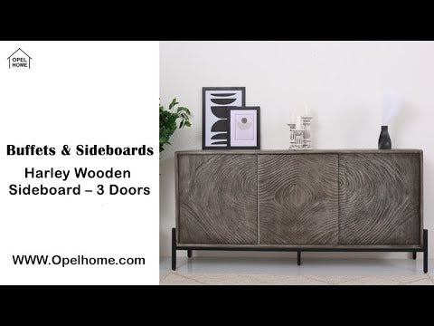 خزانة جانبية خشبية من هارلي - ٣ أبواب، خشب مصمت، لون رمادي | أوبل هوم الإمارات العربية المتحدة