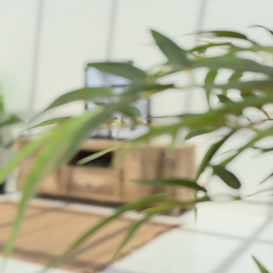 وحدة تلفزيون خشبية من هارويك - خشب مانجو مصمت، لمسة نهائية طبيعية، وحدة تحكم وسائط | أوبل هوم الإمارات العربية المتحدة
