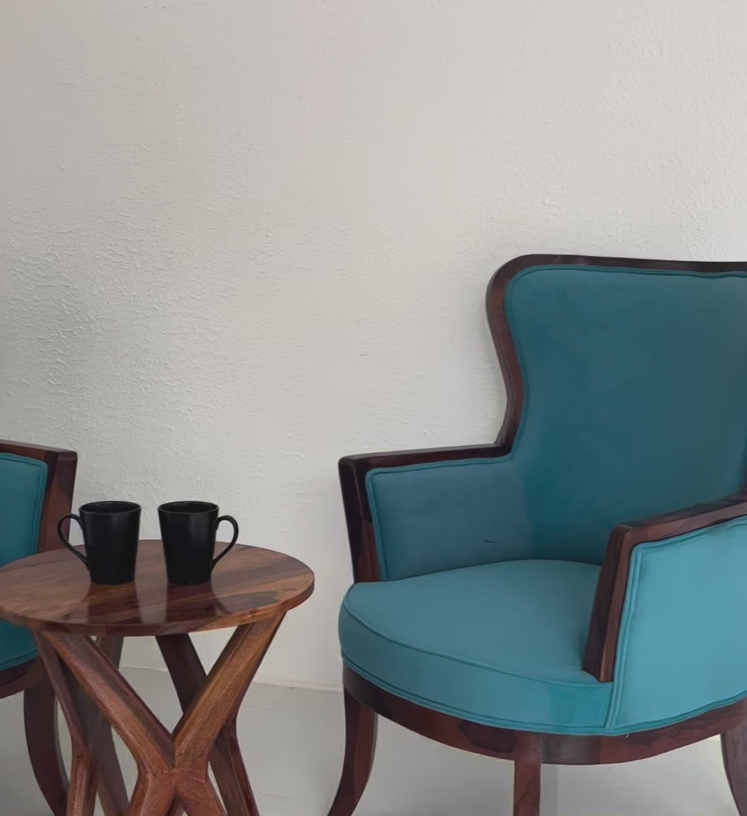 يسلط طلاء خشب الساج الخاص بالكرسي الضوء على الحبوب الطبيعية لخشب الورد، مما يوفر مظهرًا دافئًا وغنيًا، بينما يوفر التنجيد المخملي الفاخر راحة فائقة للاسترخاء أو القراءة.