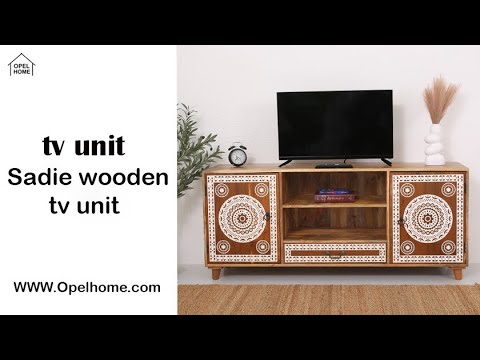 وحدة تلفزيون خشبية من سادي - خشب مانجو مصمت، لون طبيعي + أبيض | أوبل هوم الإمارات العربية المتحدة