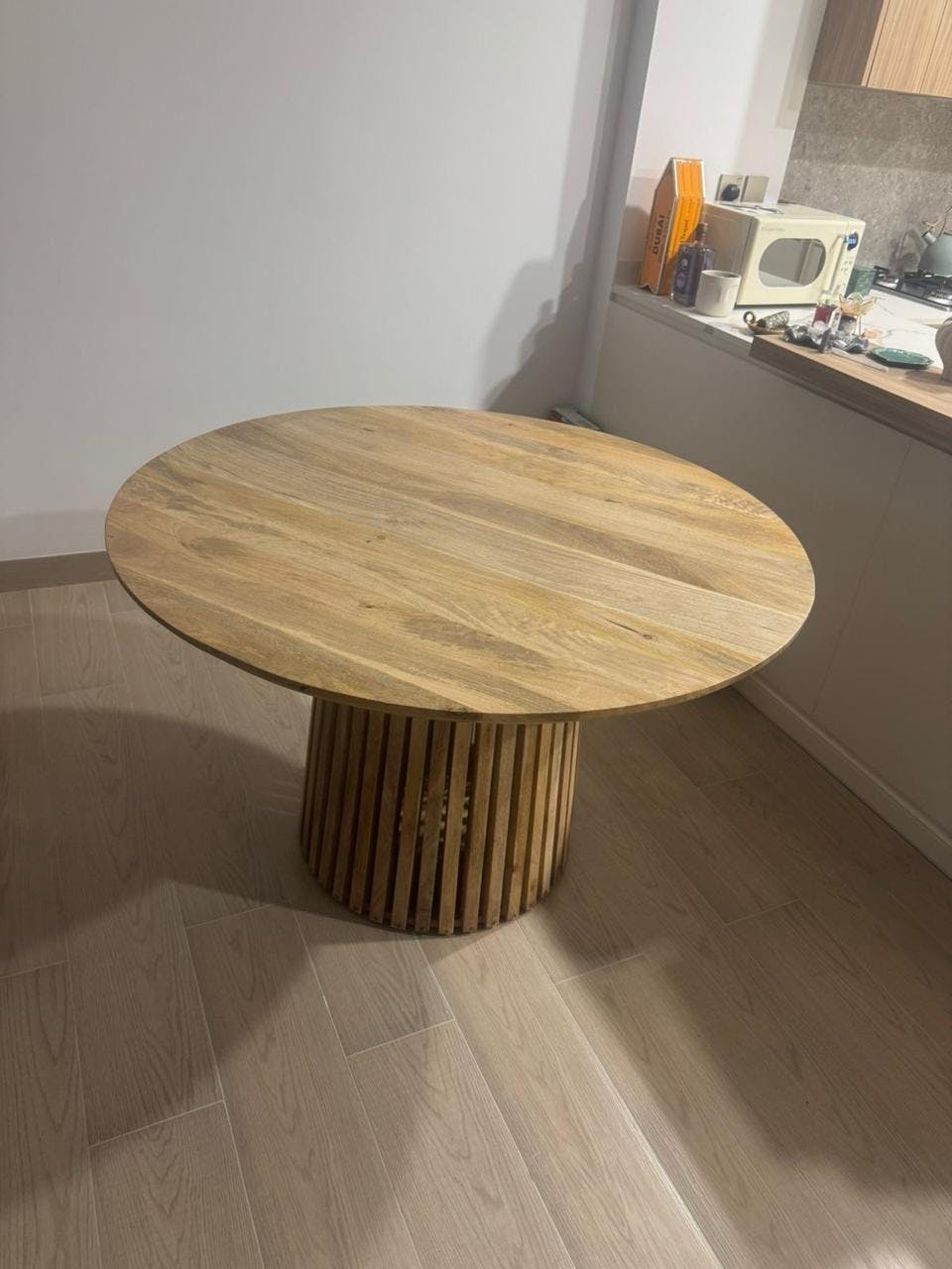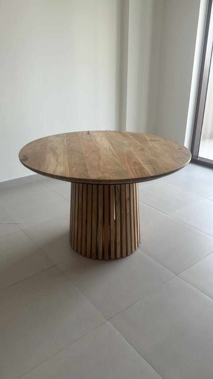 طاولة طعام دائرية شاكر - ٤ مقاعد، خشب مانجو مصمت، لمسة نهائية طبيعية | أوبل هوم الإمارات العربية المتحدة