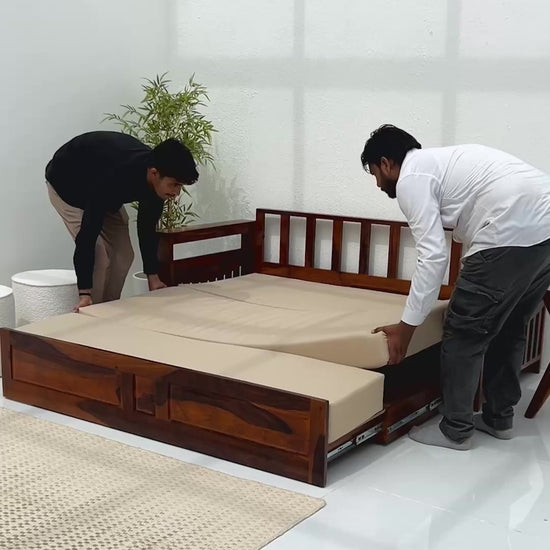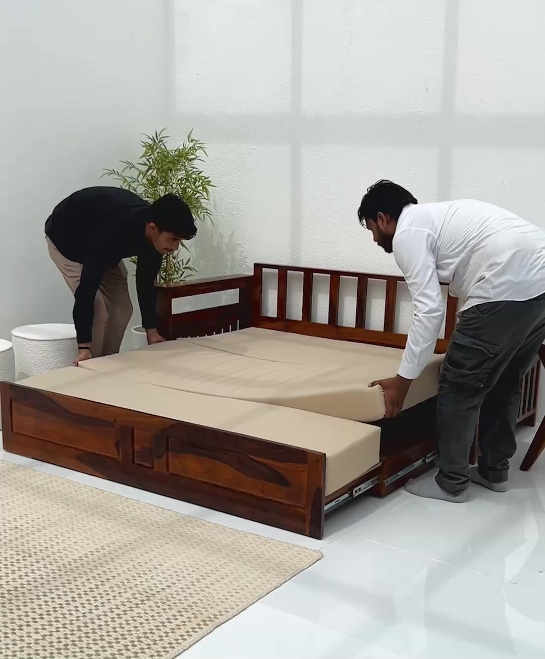 أريكة زينترا الخشبية مع سرير - مساحة تخزين، خشب الورد الصلب، لون العسل | أوبل هوم الإمارات العربية المتحدة