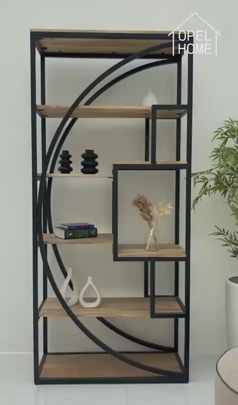مكتبة وودورا الصناعية - خشب مانجو مصمت وحديد، لمسة نهائية طبيعية، مساحة تخزين طويلة | أوبل هوم الإمارات العربية المتحدة