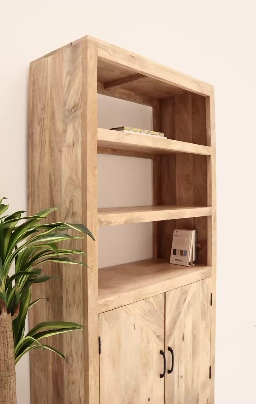 Aroha Display Shelves Unit – Solid Wood, Natural Finish, Tall Bookcase | Opelhome UAE