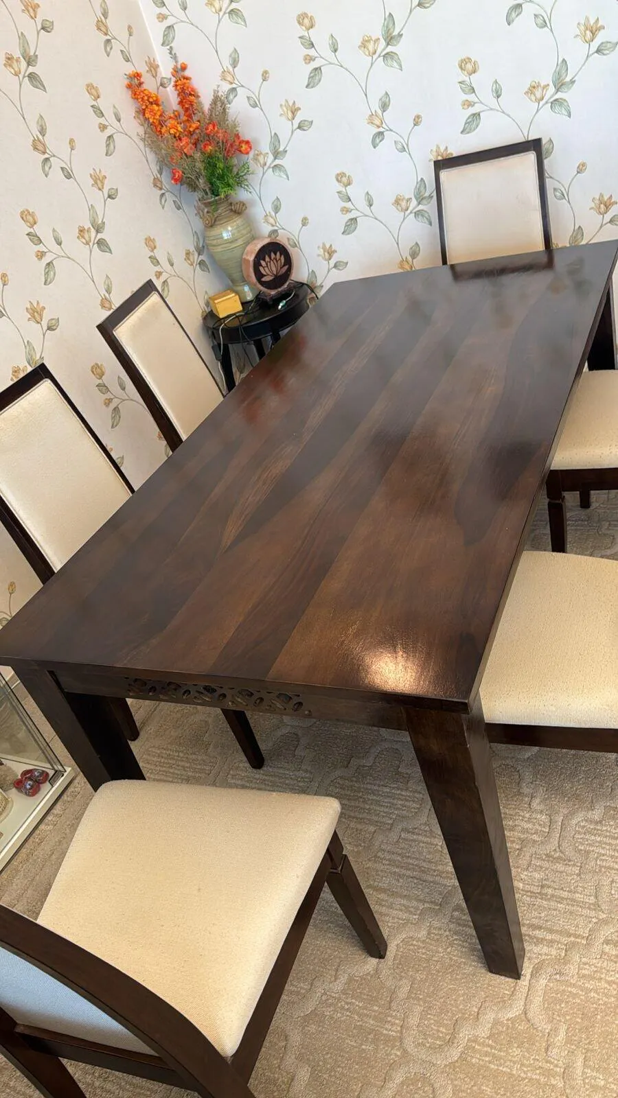 Canvas Wooden Dining Table – Only Table, Solid Rosewood, Walnut Finish | Opelhome UAE
