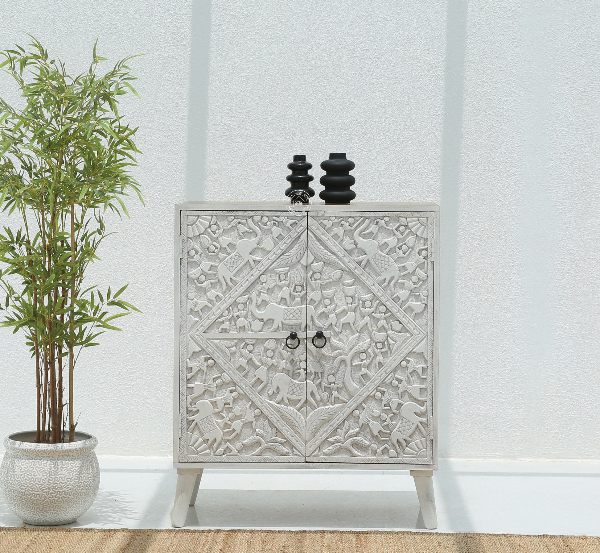 Caroa Two Door Wooden Sideboard & Buffet – Solid Mango Wood (White Finish)