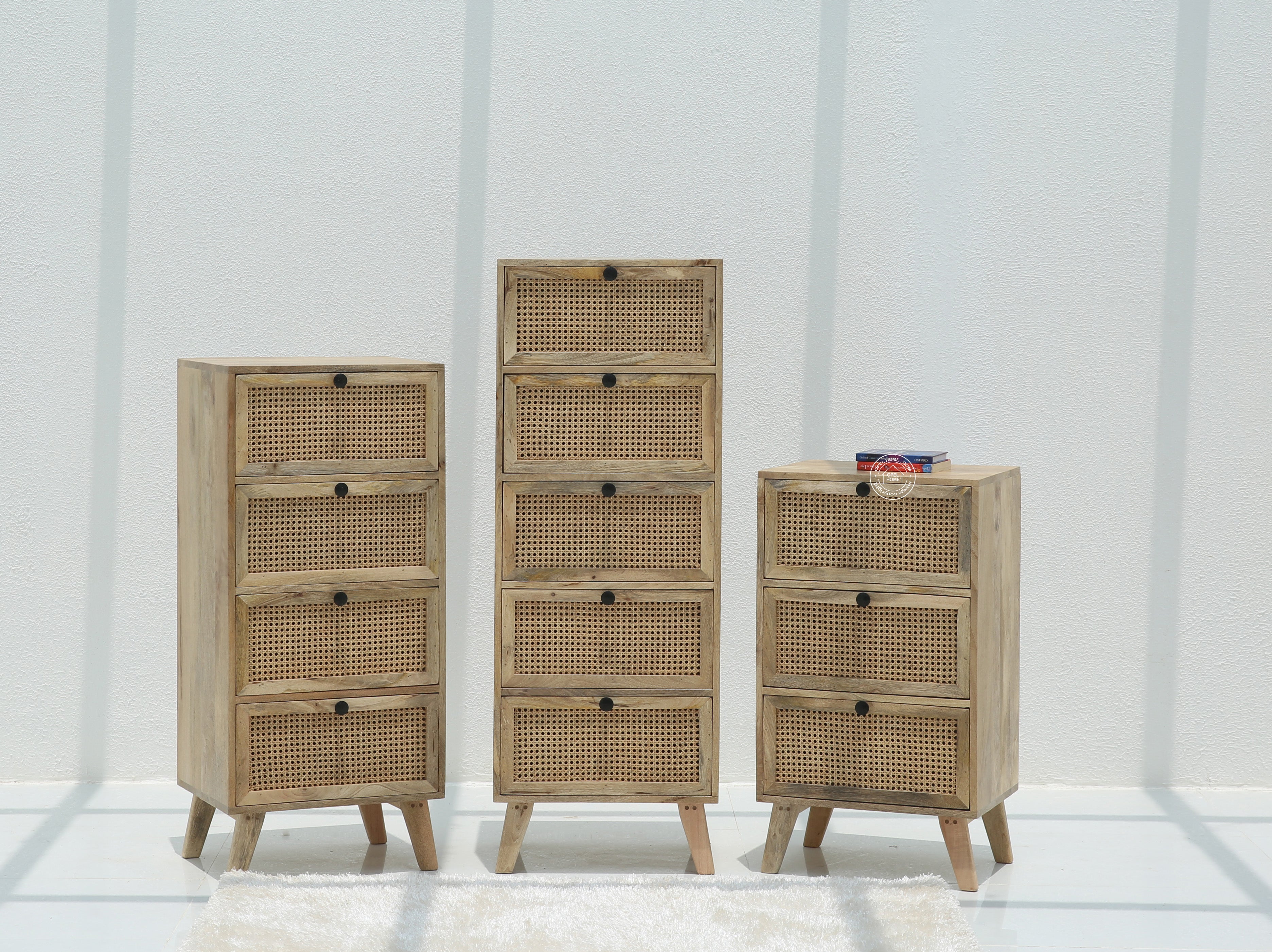 Perfect for homes in Dubai, Abu Dhabi, and Sharjah, the Grainline Chest of Rattan Drawers offers functional storage with artisanal design.