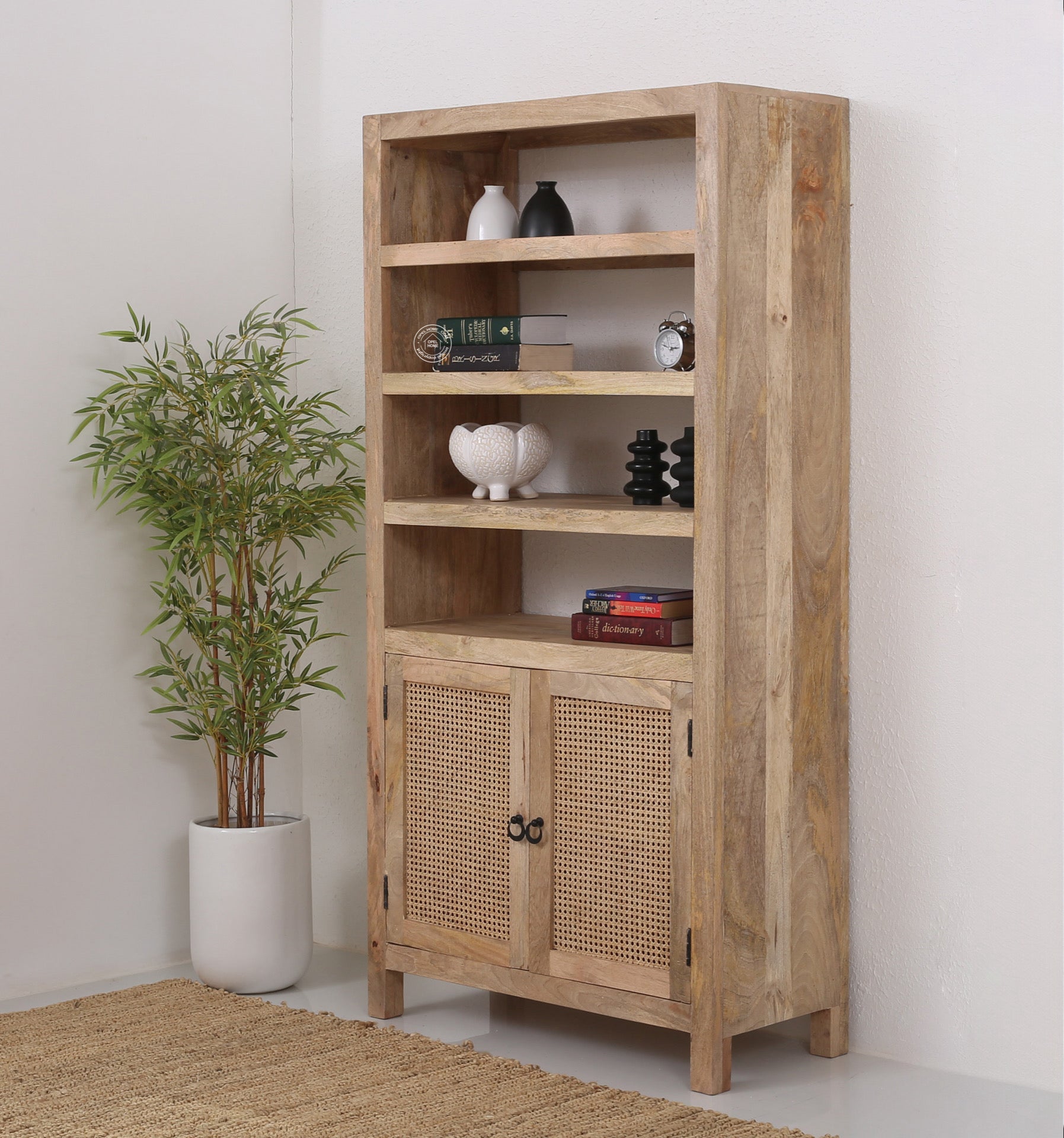 Bring timeless elegance and functionality to your interiors with the John Rattan Wooden Bookshelves. Expertly crafted from premium solid mango wood, this shelving unit features a natural beige finish that beautifully showcases the grain and texture of the wood. The subtle rattan detailing enhances its rustic charm, making it a versatile addition to any home.